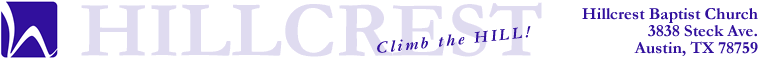 Copyright © 2000-2023 by Hillcrest Baptist Church, Austin, Texas Send suggestions and corrections via email